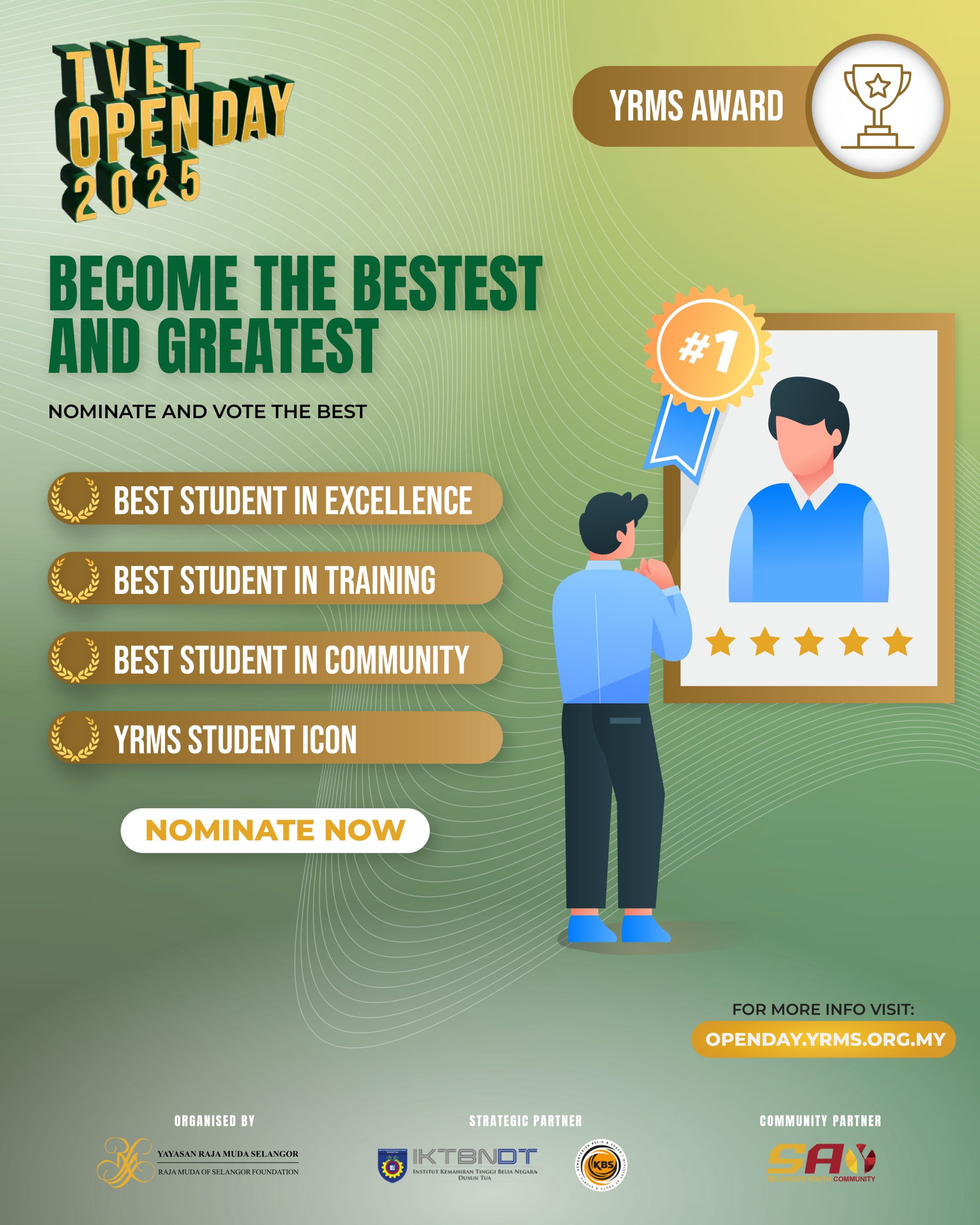 An annual award ceremony for the sponsorship recipients and partner institution students of Yayasan Raja Muda Selangor. YRMS Award nominations are open to students and alumni in 4 categories: